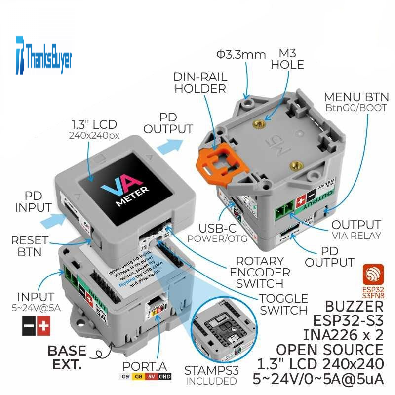 M5Stack VA Meter Programmable High Precision Power Meter M5StampS3 Voltage Current Measurement