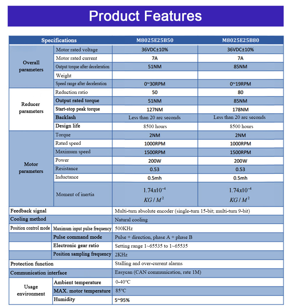 M8025E25B50 DC Servo Gear Motor Servo Motor with Gearbox (80mm Flange 200W & Reduction Ratio 50)