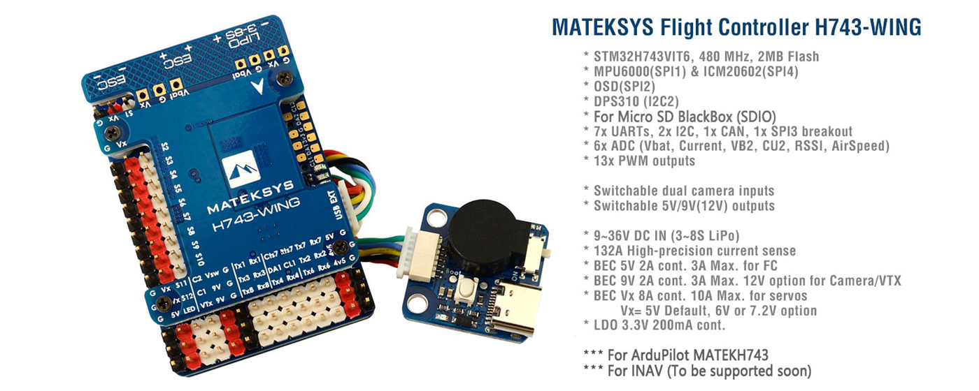 MATEKSYS H743-WING Drone Flight Control With OSD BEC For RC FPV Multi-rotor Fixed Wing Drones
