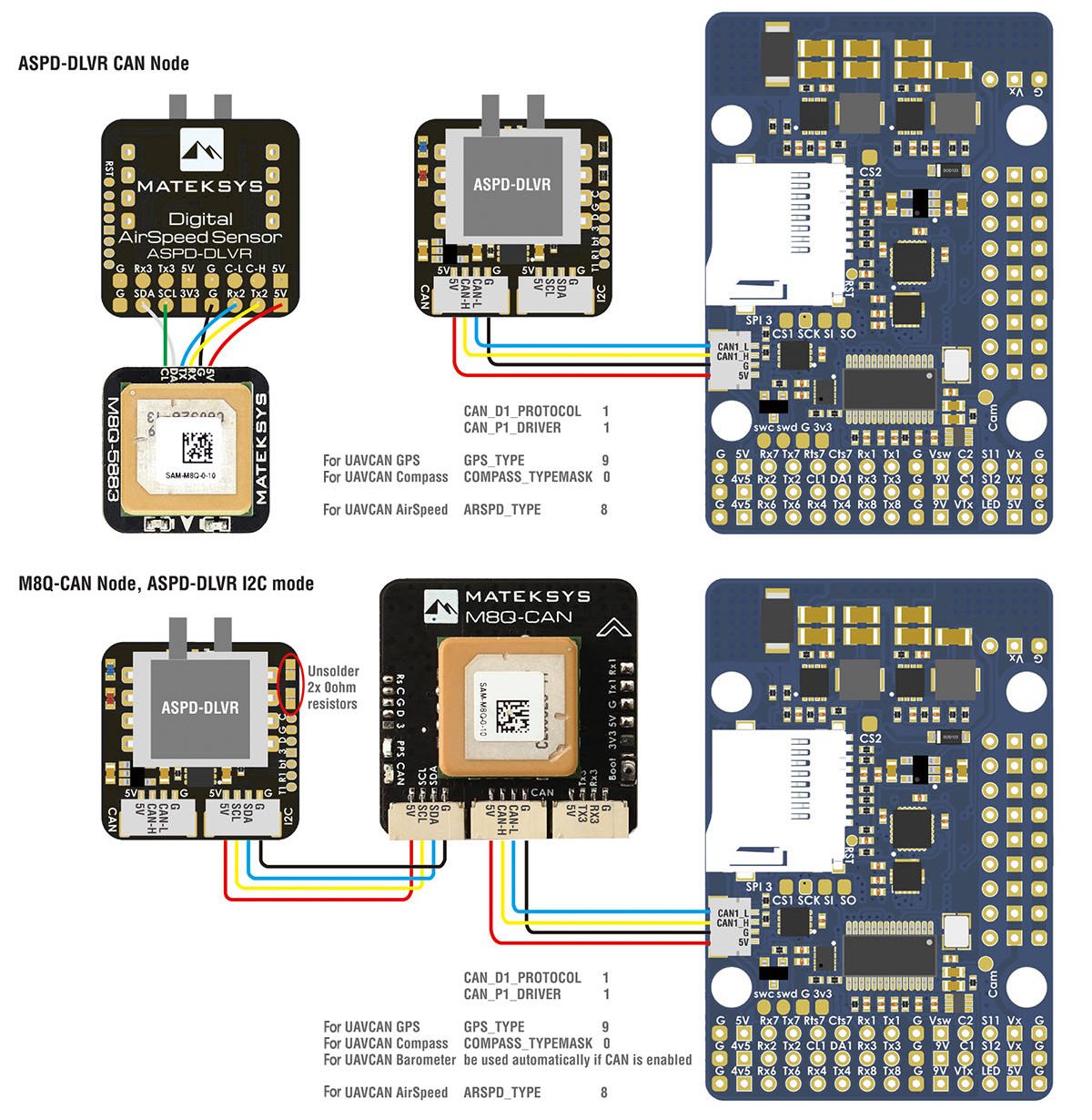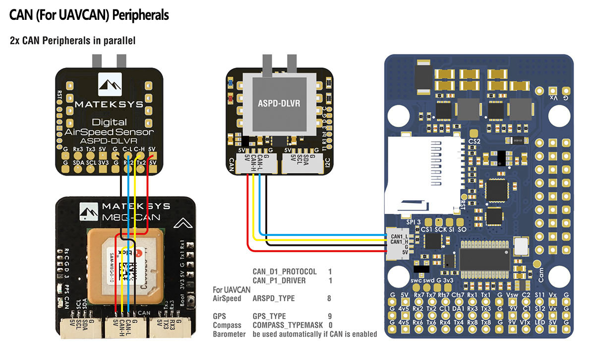 - Voltage Sensor: 1:10 (Scale 1100 in INAV, BATT_VOLT_MULT 11.0 for ArduPilot)