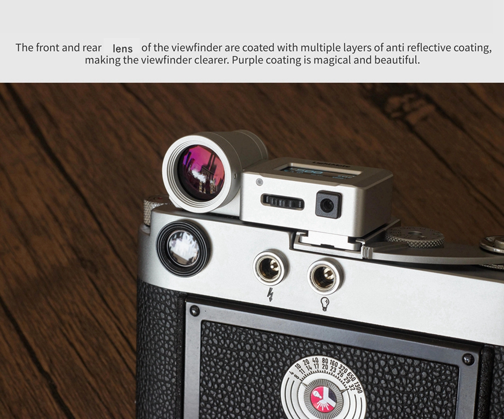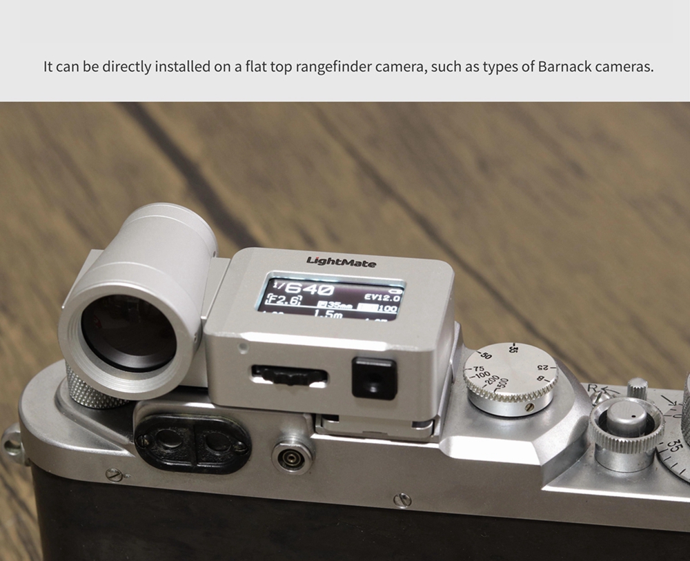 - Screen flipping display. (Adapted to cameras with cold shoe at the bottom. Eg. for Rollei 35 camera)