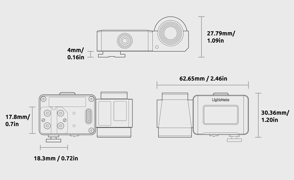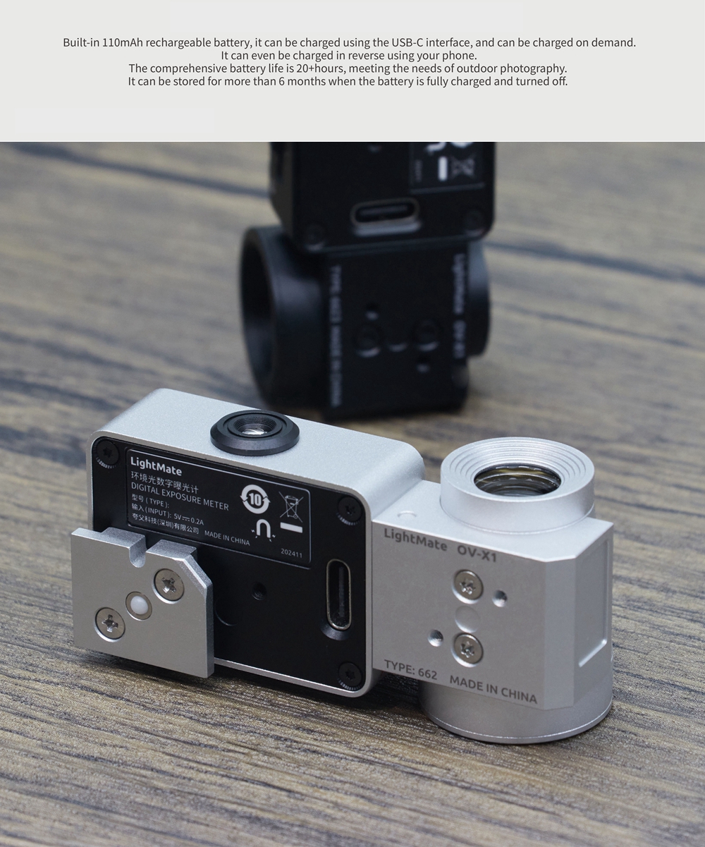 Metal Silvery LightMate Area 2S + OV-X1 17-degree Film Camera Light Meter High Precision Chargeable Exposure Meter