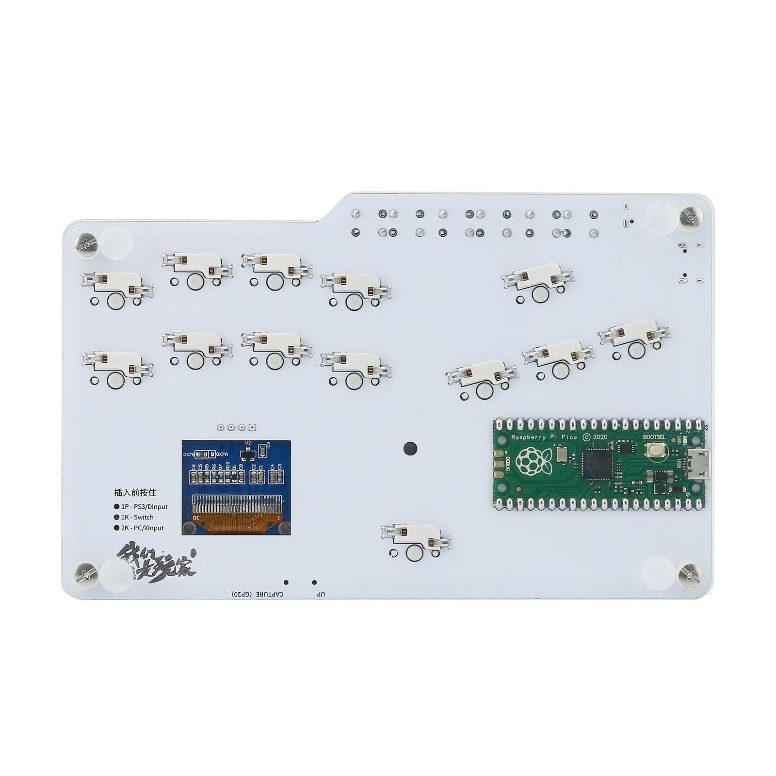 - PICO scheme for Raspberry Pi. A hole is reserved on the board for flashing. GP2040 makes it convenient for players to flash open source firmware to explore more ways to play. It supports for PC, NS, Android 10 and above and PS3.
