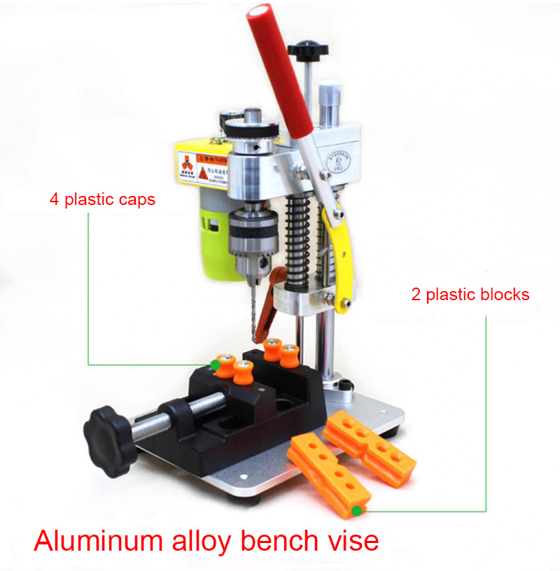 - Aluminum alloy bench vise: It comes with 4 plastic caps and 2 plastic blocks