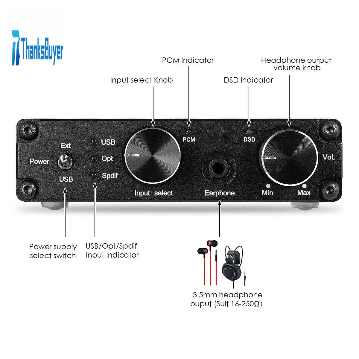 - Supported USB Decoding Formats: PCM 44.1k-384k/32bit & DSD64-DSD256 Automatic Recognition to Decode (Not for DXD format)
