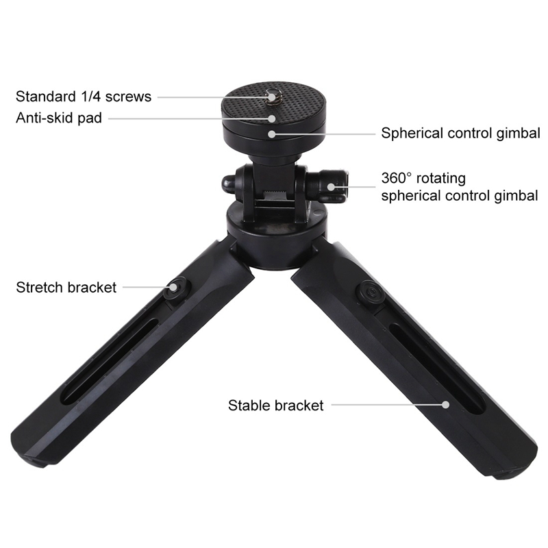 Mini Tripod Desktop Tripod Adjustable Height with 1/4 inch Screw For Cameras Cellphone PU409