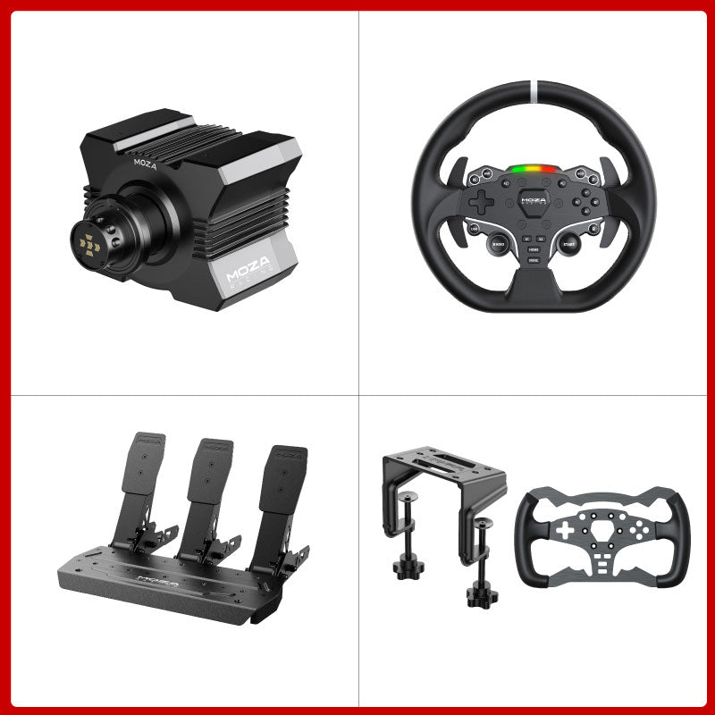 MOZA R5 Wheel Base + 11" ES Steering Wheel + 3-Pedal SRP Lite + Table Clamp + Formula Wheel Mod