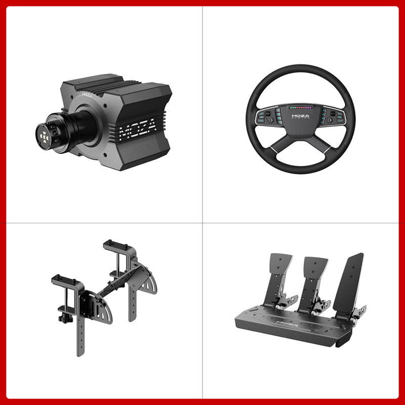 MOZA R9 V3 9Nm Direct Drive Wheel Base + 15.8" TSW Truck Wheel + Table Clamp + SR-P 3-Pedal Set