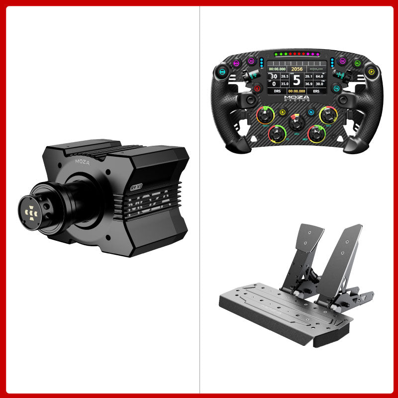 MOZA R9 V3 9Nm Direct Drive Wheel Base + 280mm/11" FSR2 Formula Steering Wheel + SR-P 2-Pedal Set