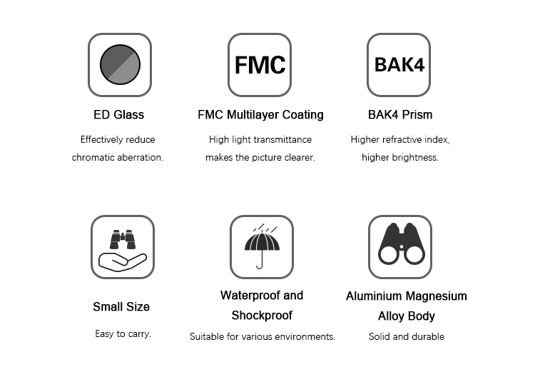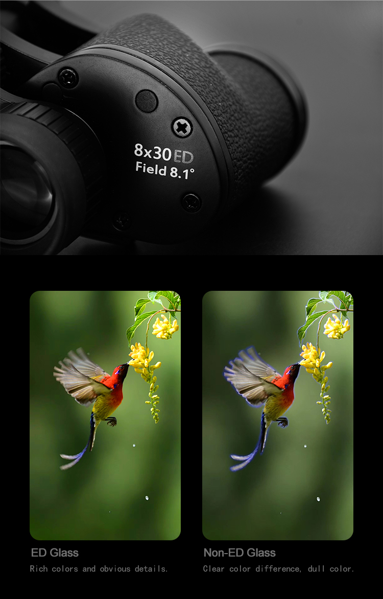 - MS ED 6x30/8x30 adopt FMC ultra-wideband coating, which can effectively improve the light transmittance, thus making the image clear and bright.