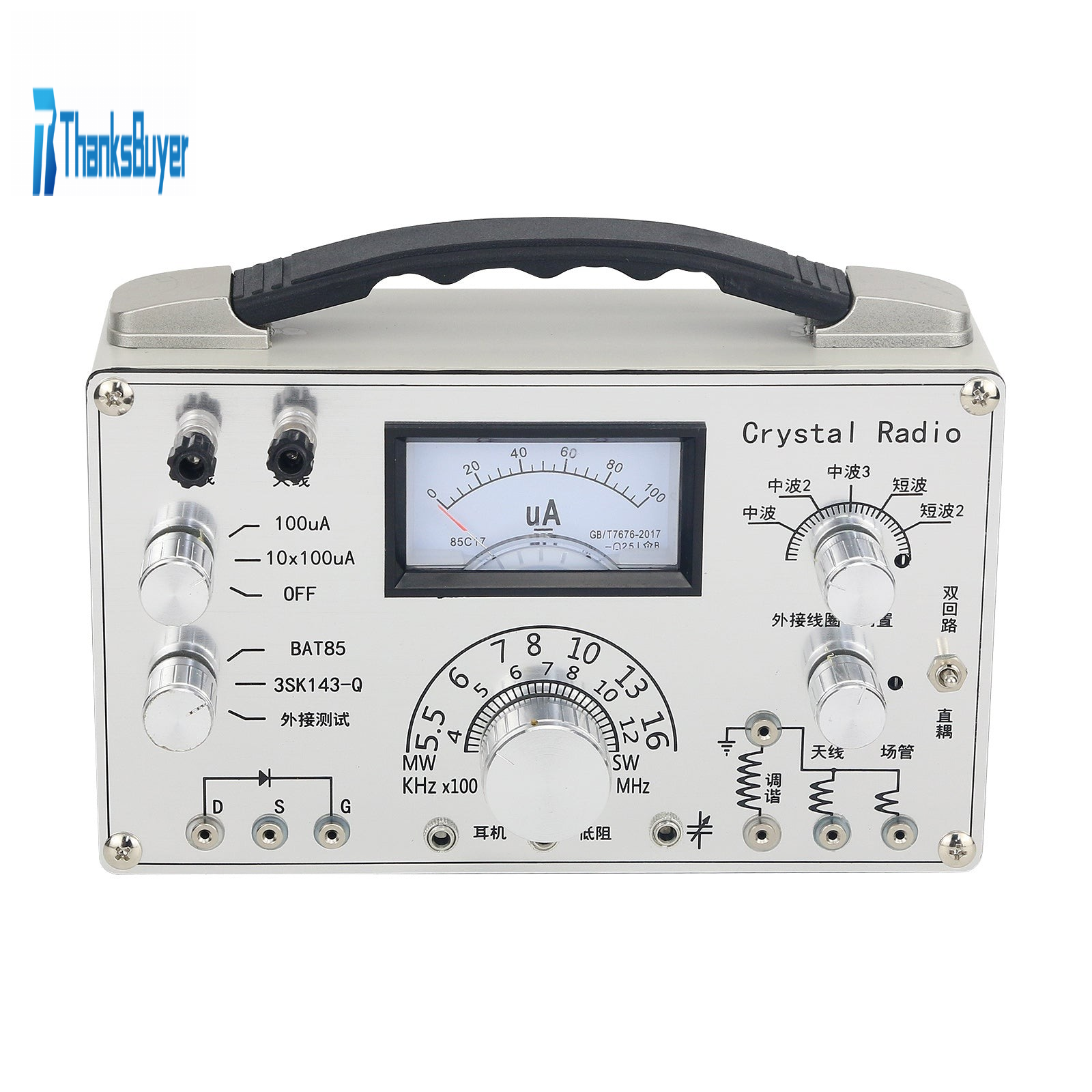 - The front of the crystal radio is not only a crystal radio, but also can be connected with three major parts, namely, coil, variable capacitor, detector diode and field tube, and crystal radio. A complete crystal radio can be assembled, which can visually compare the advantages and disadvantages of the coil and detector, which is very convenient for players to play with crystal radio. The ore machine uses magnetic ring, coil double circuit and direct coupling conversion, diode and field tube conversion, and the second gear of the ammeter can be changed and closed, Equipped with impedance converter, it can be used as both high impedance and low impedance earphones, with complete functions and convenient operation.