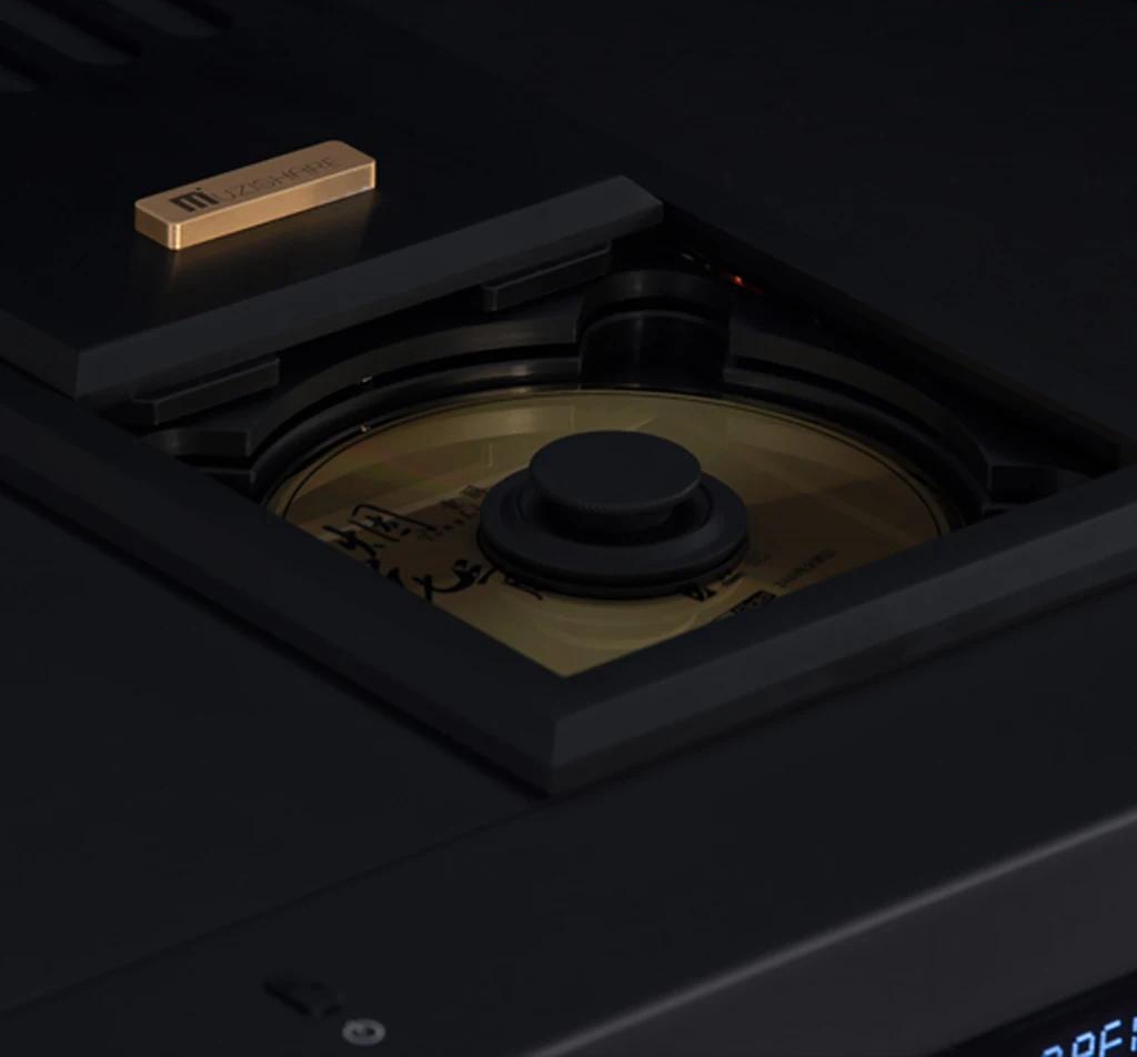 - Full-thickness aluminum precision-milled top-loading disc tray with piano-key style buttons for smooth and responsive tactile feedback. The meticulous craftsmanship showcases a high-end product demeanor, exuding opulence.