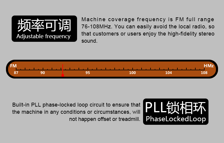 1. The frequency is more accurate, 76-108MHz continuously adjustable;