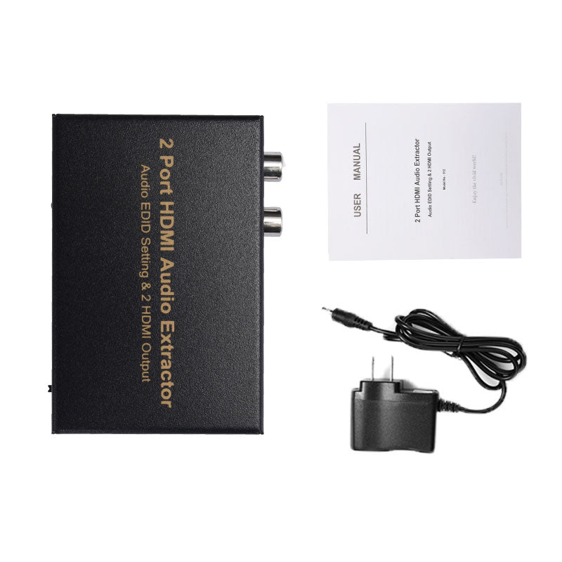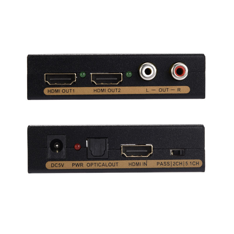 - 1xHDMI input and 2xHDMI output, can sync separation HDMI audio signal. Supports 1xSPDIF optical digital audio output, 2 channel RCA analog audio output