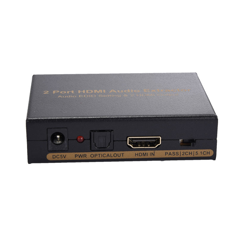 The 2 Port HDMI Audio Extractor can allow two HD Display/TV connected to one HDMI Source and also can extract audio signals from your HDMI source. You can take your original HDMI audio signal and convert it to digital optical or 2 channel analog audio output. This product supports Dolby digital AC-3, DTS, LPCM and other digital audio format output. It is one perfect audio extractor for your DVD, Blue-Ray DVD, PS3, X360BOX, HD Player, PC etc.