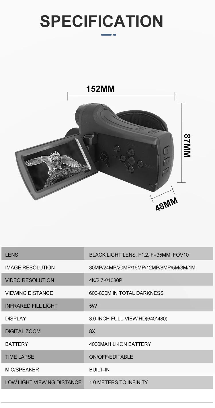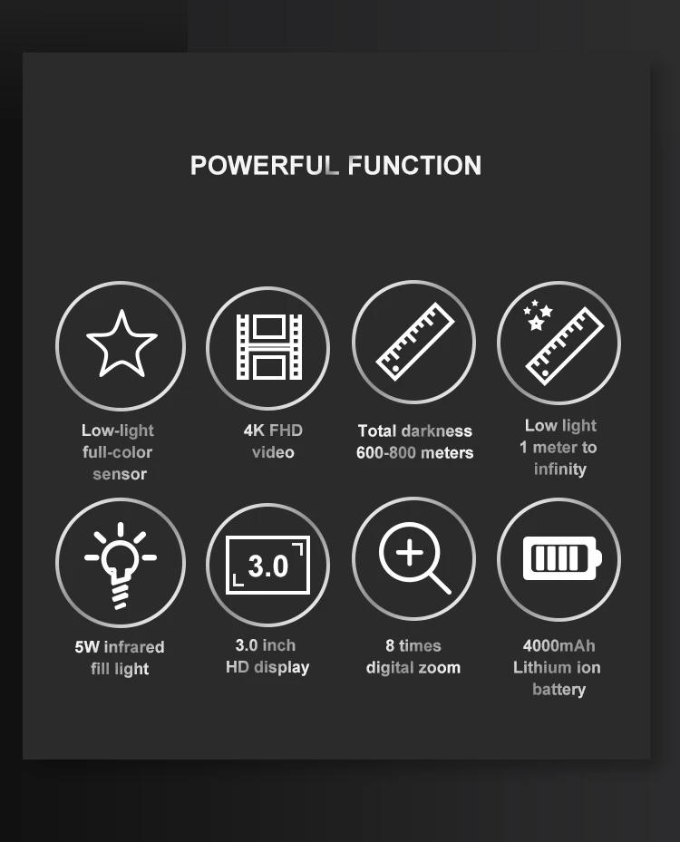NV2186 700m Night Vision 8X 4K HD 30Million Pixel Digital Monocular DV Handheld Night Vision Goggle with 3-inch Screen