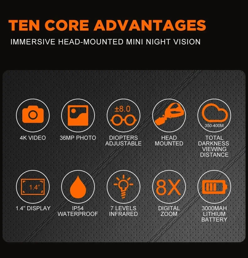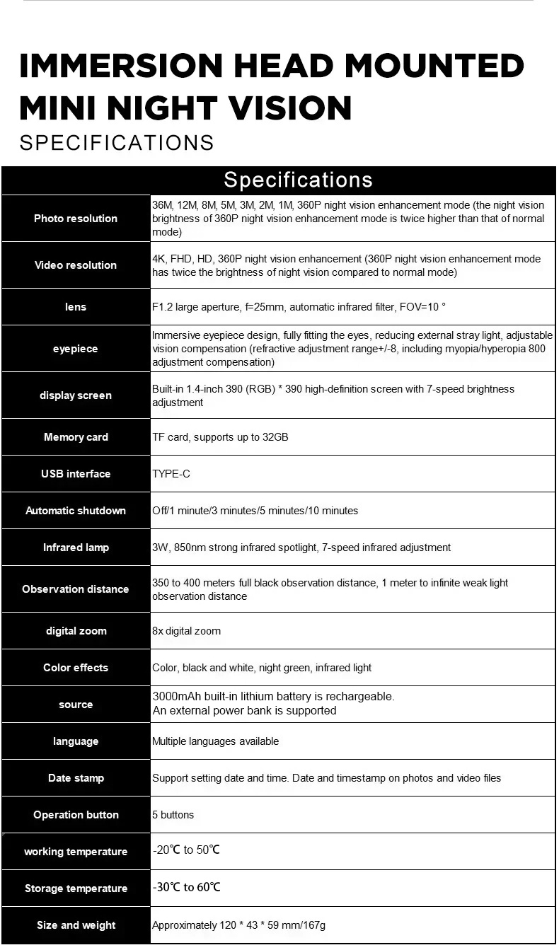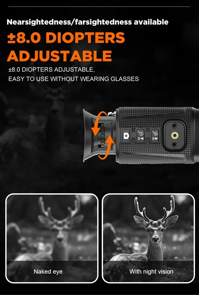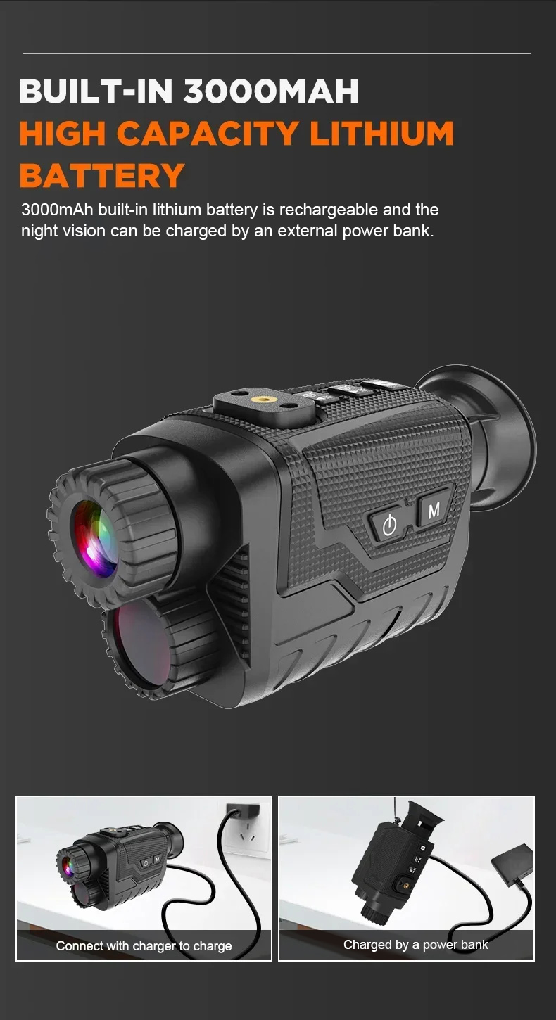 - 3000mAh built-in lithium battery is rechargeable and the night vision can be charged by an external power bank