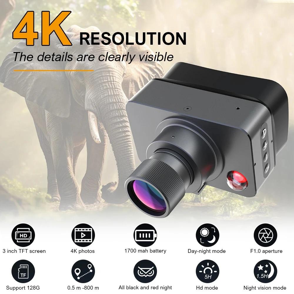 NV99Y 4K HD 4X Digital Zooming Night Vision Device IP54 Waterproof Thermal Imager with 3-inch TFT Display