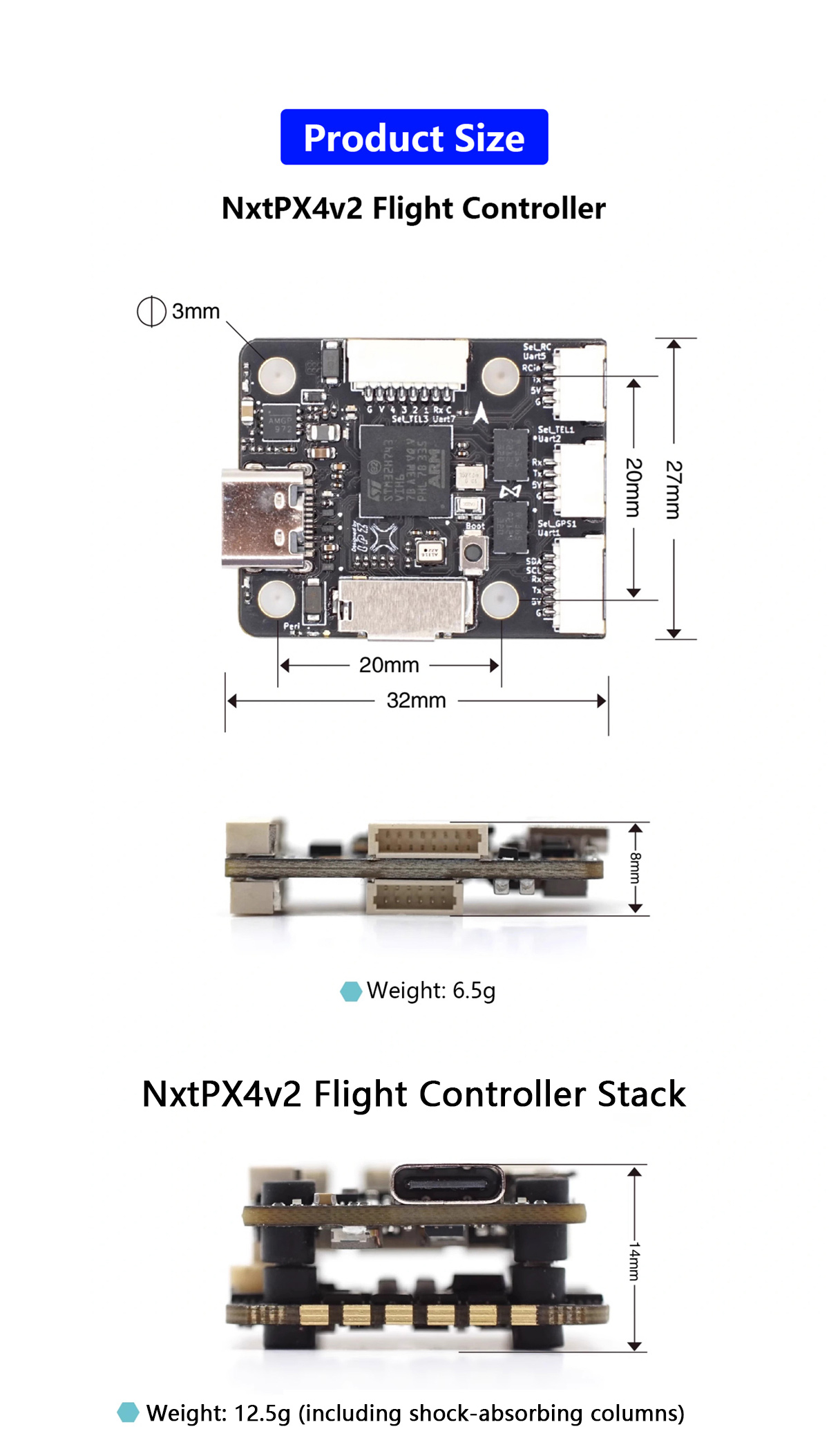 - Currently, the flight controller supports firmware for PX4 and Ardupilot. The firmware is the PX4 version by default. If you need the firmware for Ardupilot, please contact us when placing your order. You can also flash the firmware for Ardupilot by yourselves.