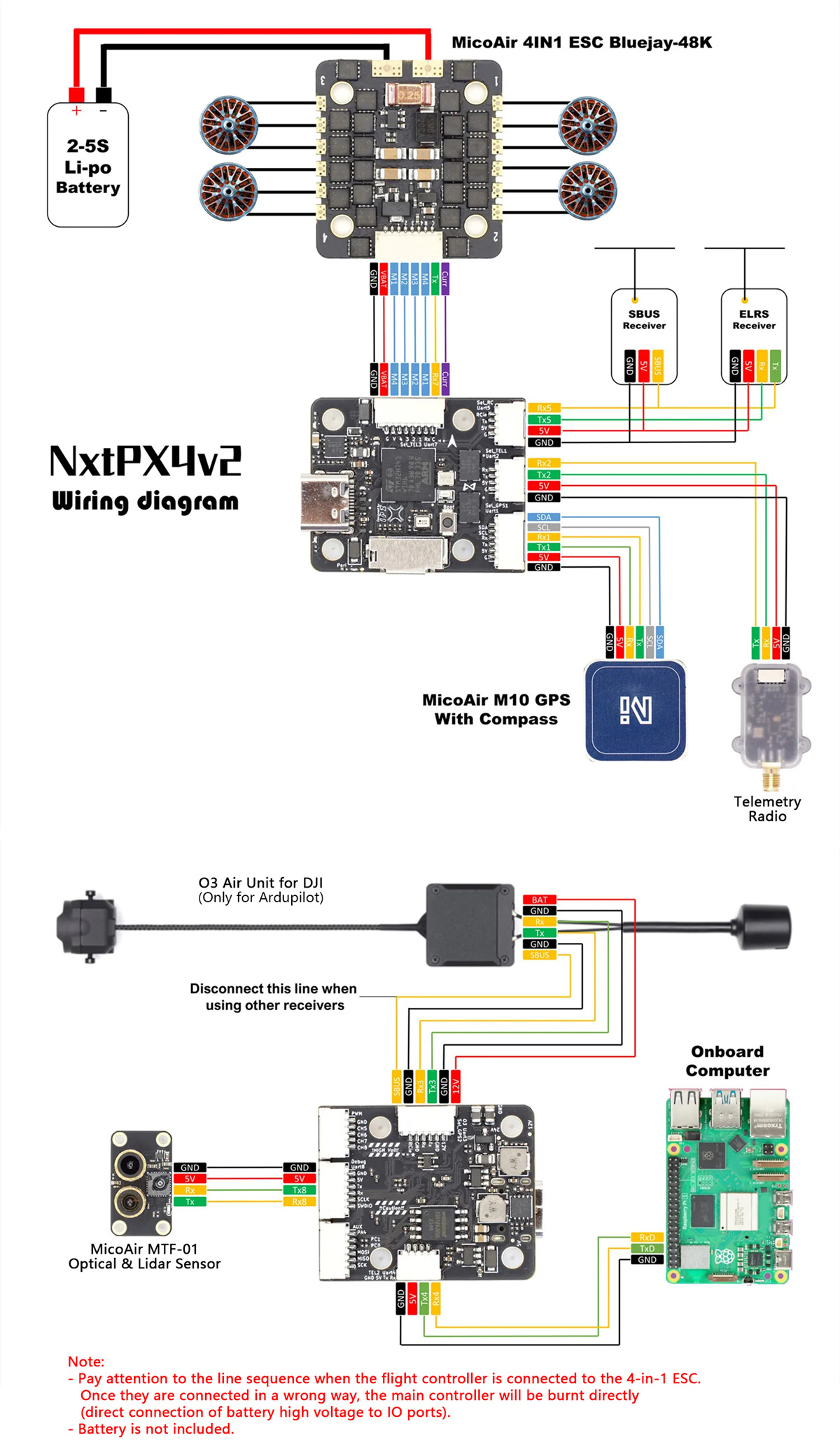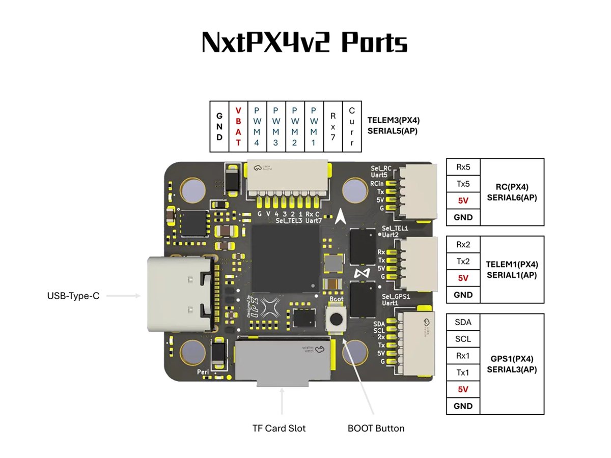 - Currently, the flight controller supports firmware for PX4 and Ardupilot. The firmware is the PX4 version by default. If you need the firmware for Ardupilot, please contact us when placing your order. You can also flash the firmware for Ardupilot by yourselves.