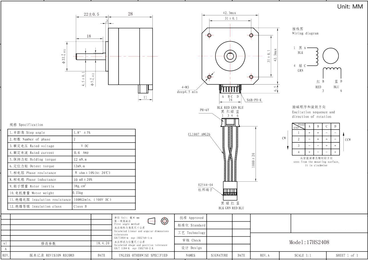 OUKEDA MOTOR 17HS2408 3D Printer Stepper Motor Two-Phase Hybrid Stepper Motor NEMA 17 Stepping Motor