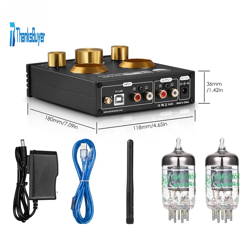 - 3 audio inputs (Bluetooth, USB, and RCA) and 2 outputs (RCA and 3.5mm headphone jack). The P1 can be used as a HiFi tube preamp, USB DAC and headphone amp. It also ensures HiFi clear, warm, dynamic, sweet tube sound and delivers an extremely high-quality listening experience [its 3.5mm headphone jack not for headphones with mic (TRRS port)]