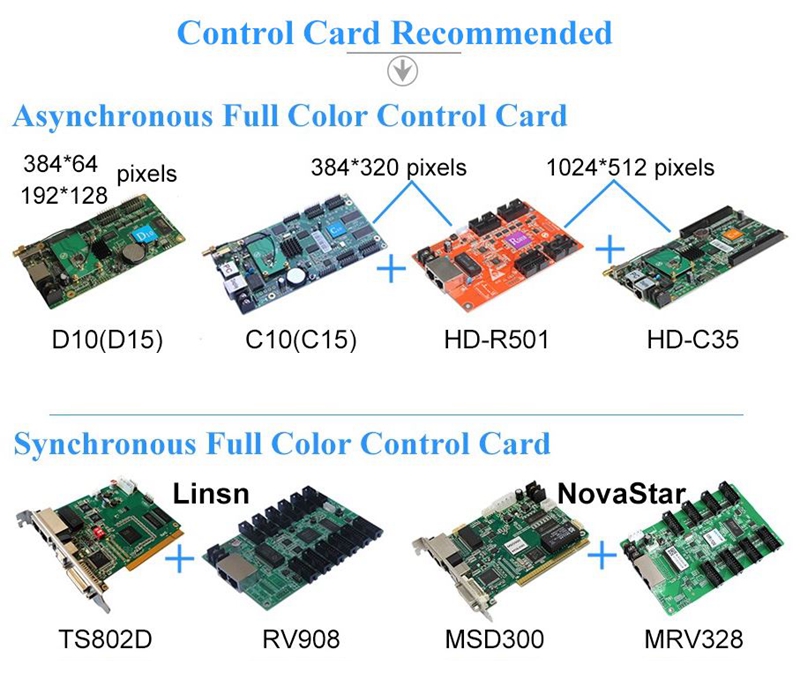 2. LED modules are mainly used to assemble large size LED display which has professional control card for them, such as control card for Huidu, Linsn, Novastar and Colorlight.