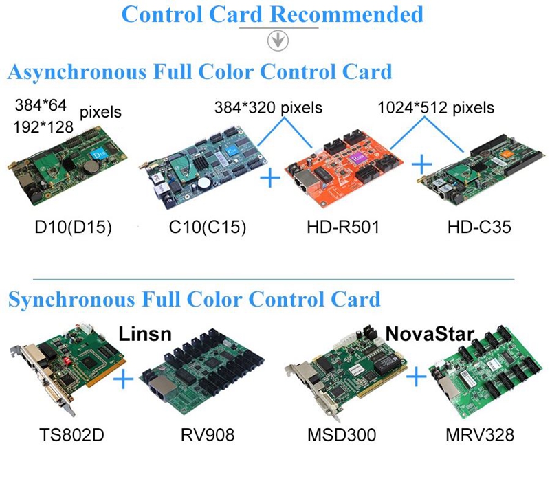 2. LED modules are mainly used to assemble large size LED display which has professional control card for them, such as control card for Huidu, Linsn, Novastar and Colorlight.