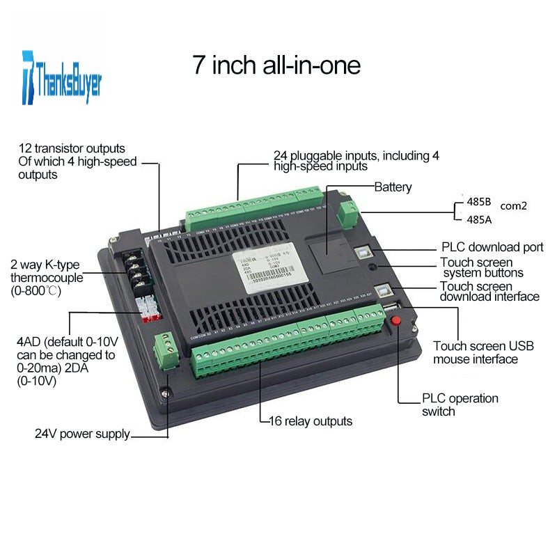 PLC Controller Programmable Logic Controller 7" HMI Touch Screen For Industrial Automation Control