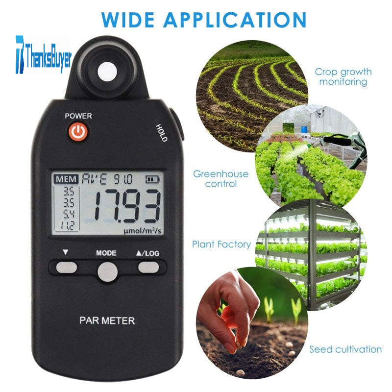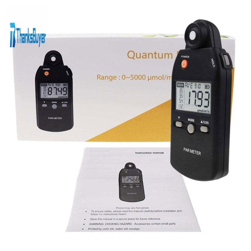- Display resolution: 0.01umol/m2/sec (0-99.99); 0.1umol/m2/sec (100-999); 1umol/m2/sec (1000-5000)