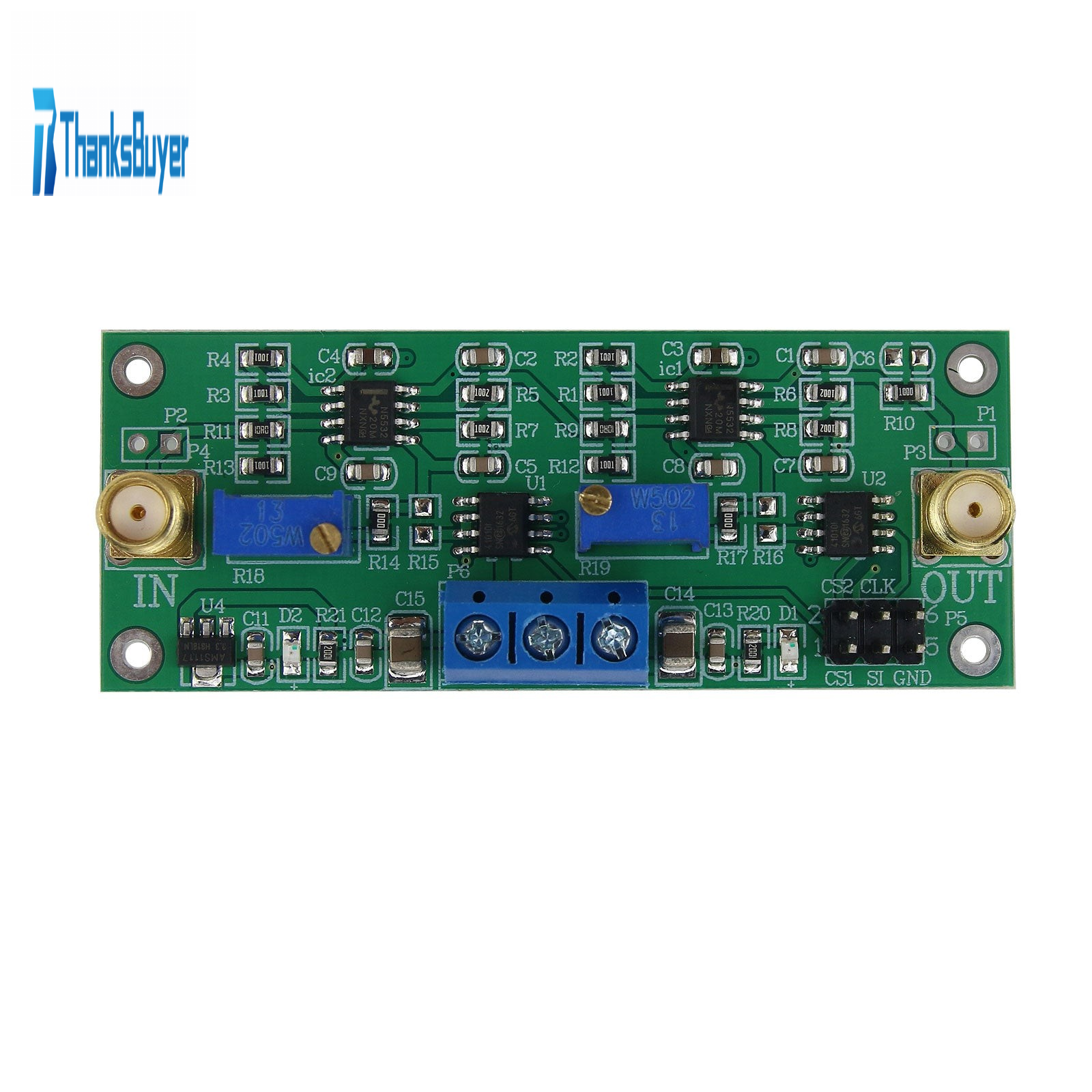 2. The signal amplification function can be realized on the board. By default, each stage is amplified by 2 times, and the two stages are amplified by 4 times.