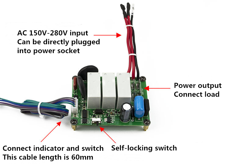1. Can be use with touch switch or self-locking switch to realize long-distance ultra-small current control (<5mA).