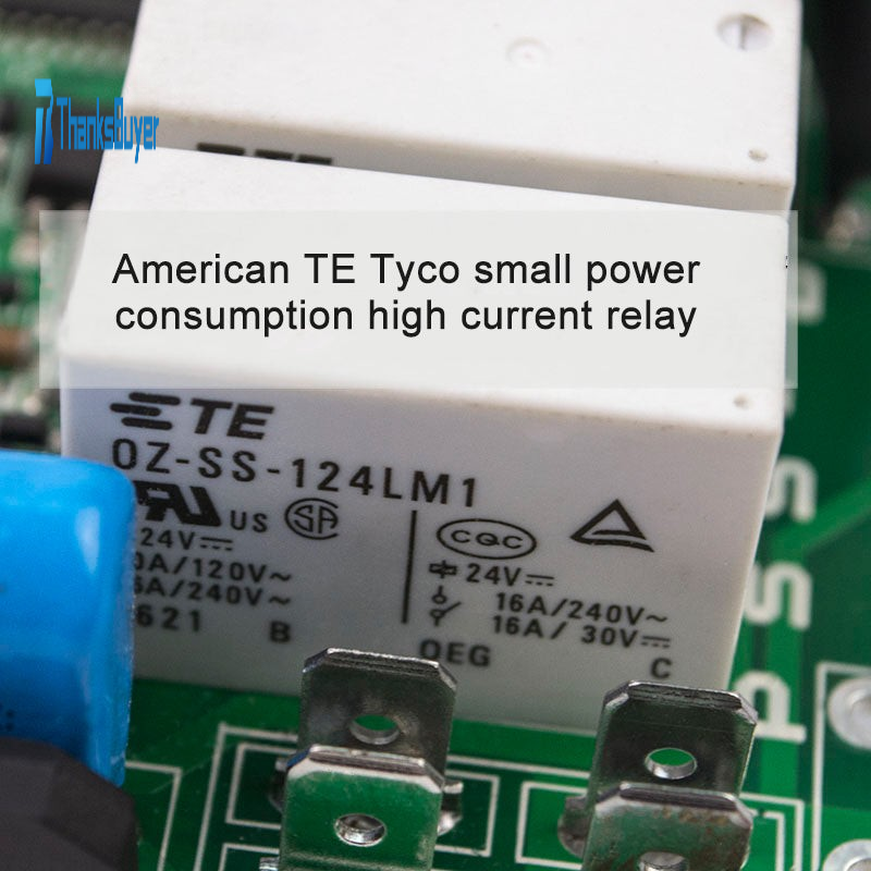 3. Use the original American TE small power consumption and high current relay, the working power consumption is about 2W, the working current of the relay can reach 32A, and it can easily drive the electrical appliances within 6000W.