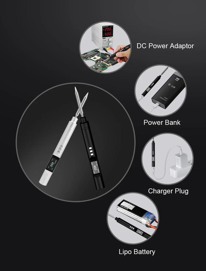 - The soldering iron is designed specifically for fast charging protocols such as QC3.0/PD3.0 and supports a power supply capacity of 18W-100W.