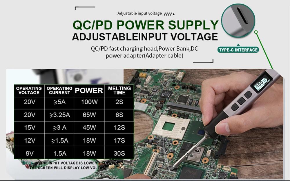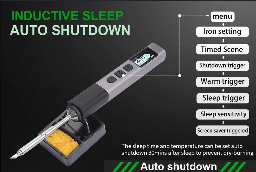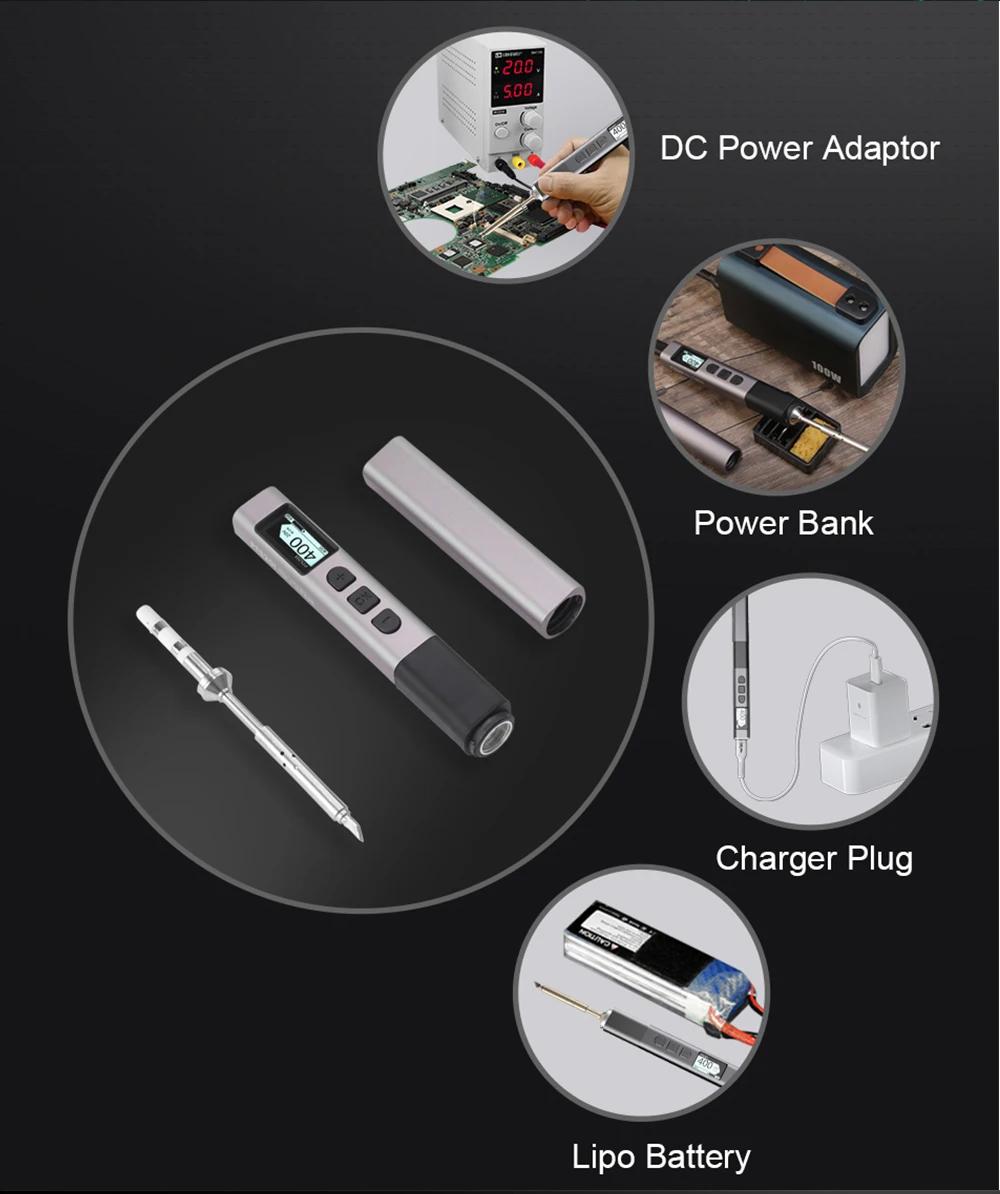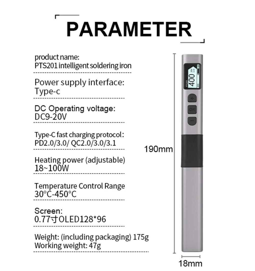 PTS201 Portable Electronic Soldering Iron PD100 Mini Intelligent Soldering Station with K-type Soldering Iron Tip