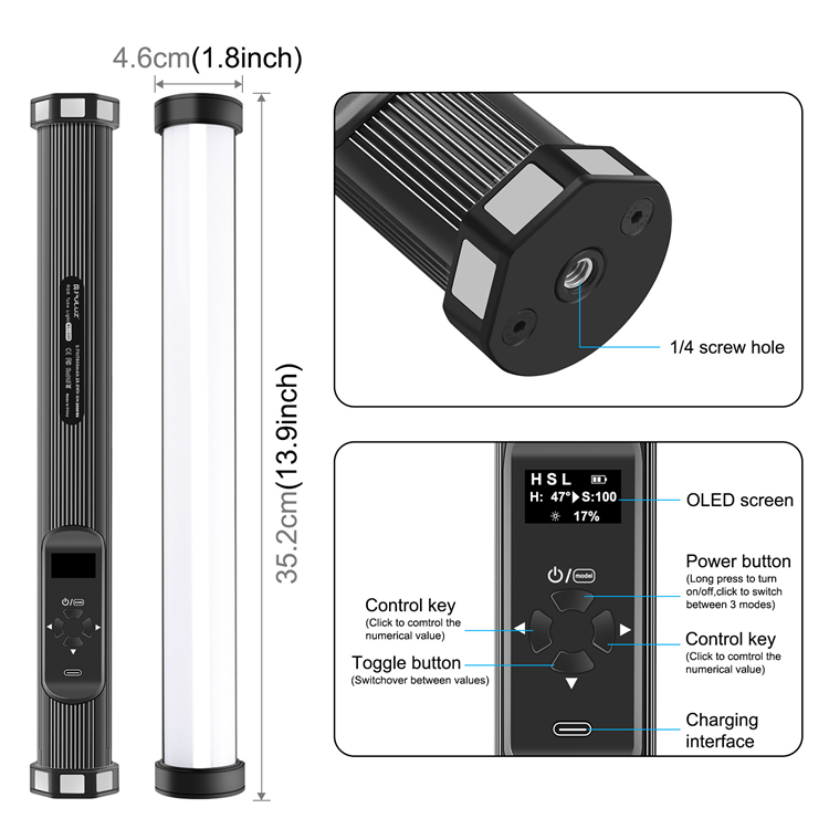 PU4132 RGB Light Stick Handheld RGB Light Bar Photography Fill Light w/ Magnet For Easy Application