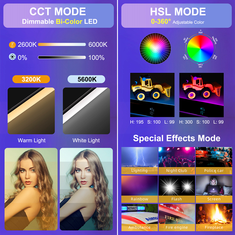 6. Multi-scene modes: This light supports 9 scene modes, including thunderbolt scenes, night club scene, police-car scene, rainbow scene, ambulance scene, fire engine scene, fire place scene, screen scene, flash scene, so it is really useful and multipurpose.