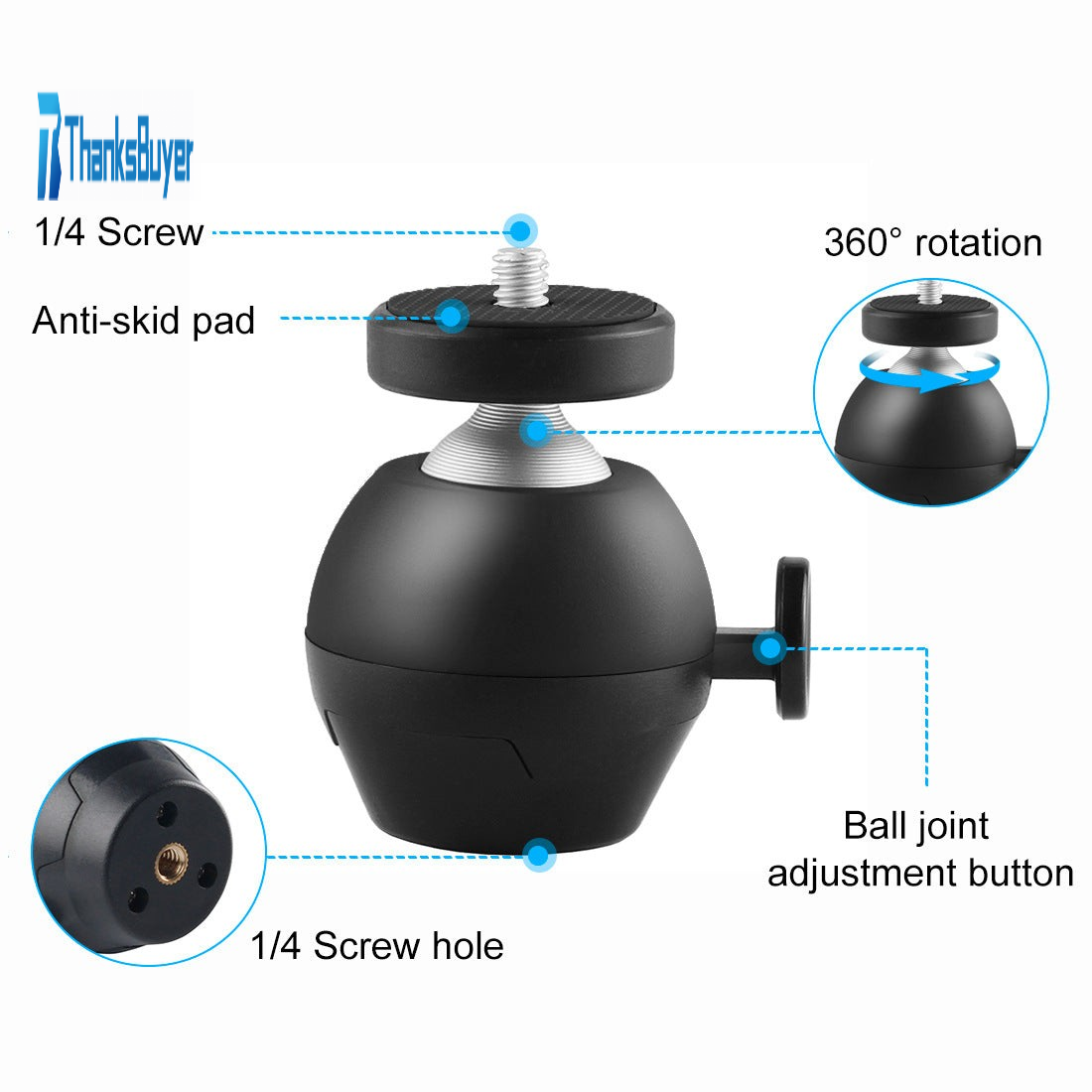 1. This professional mini ball head is good accessory to add versatility to any tripod