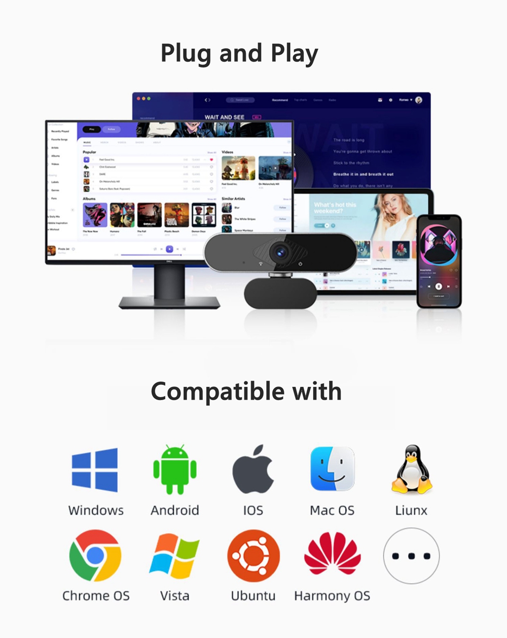 Q20 1080P HD Fixed Focus Webcam Support Active Noise Cancellation High Resolution Mini Web Camera with Stand