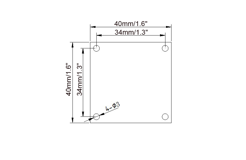 - Module size: 40 x 40 x 14mm/1.6 x 1.6 x 0.6" (without the size of connectors)