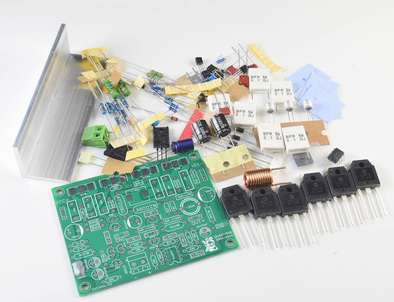 It is an imitation of the classic power amplifier for QUAD 606. It is an upgraded version of QUAD405. It comes with six transistors and a angle aluminum.