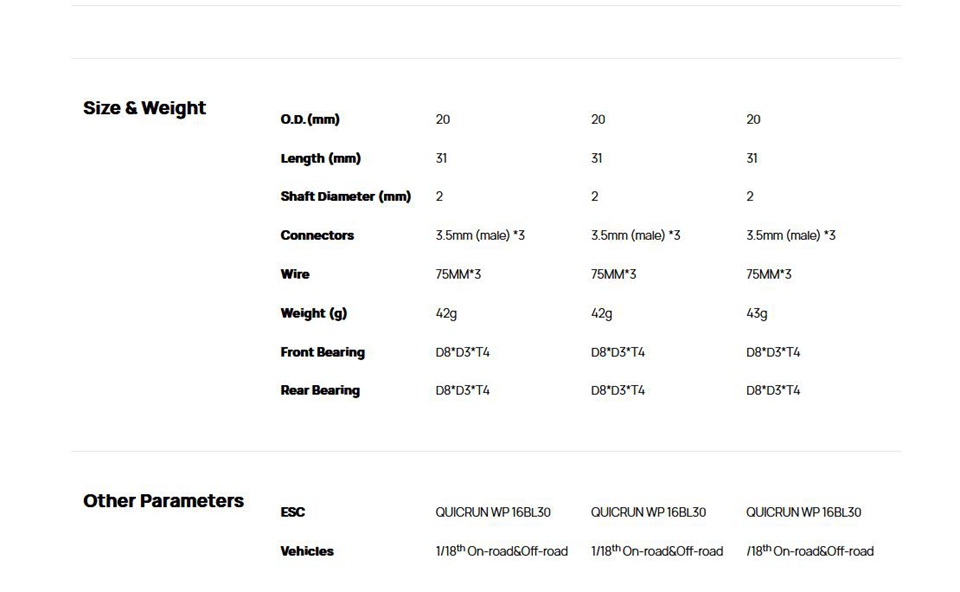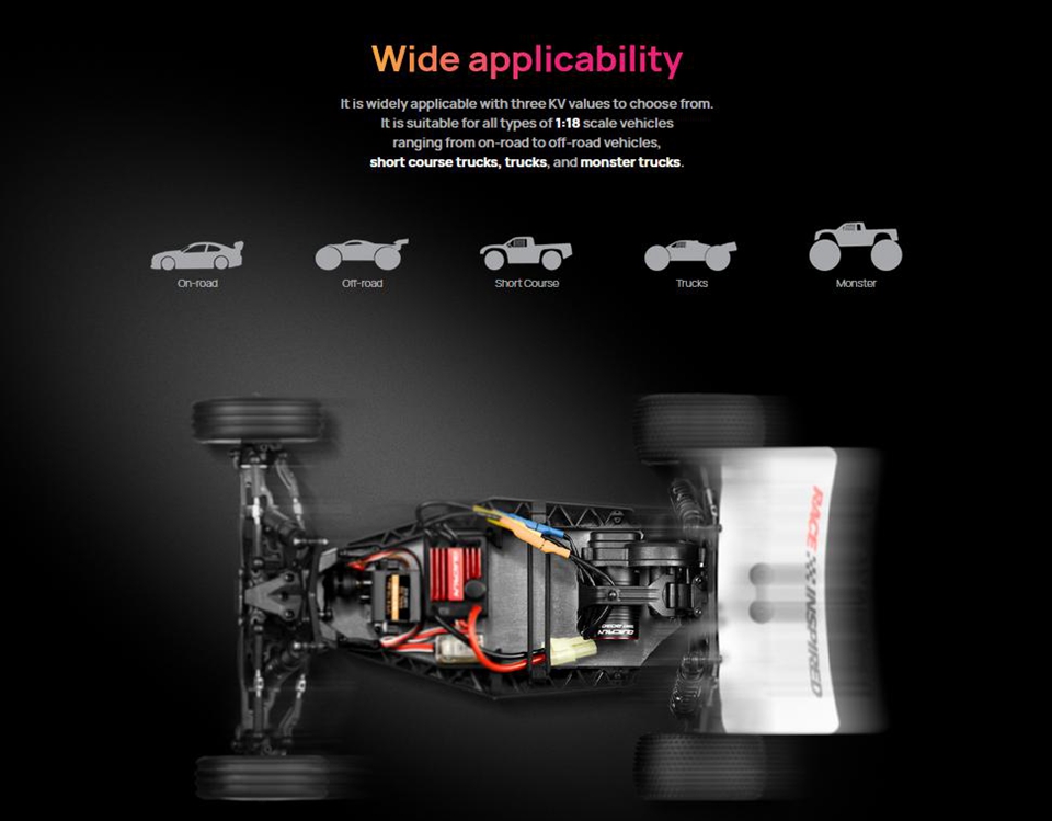 QUICRUN-2030SL-5000KV-BLACK-G2 High Speed 65000RPM Brushless Motor for 1:18 Scale Vehicles