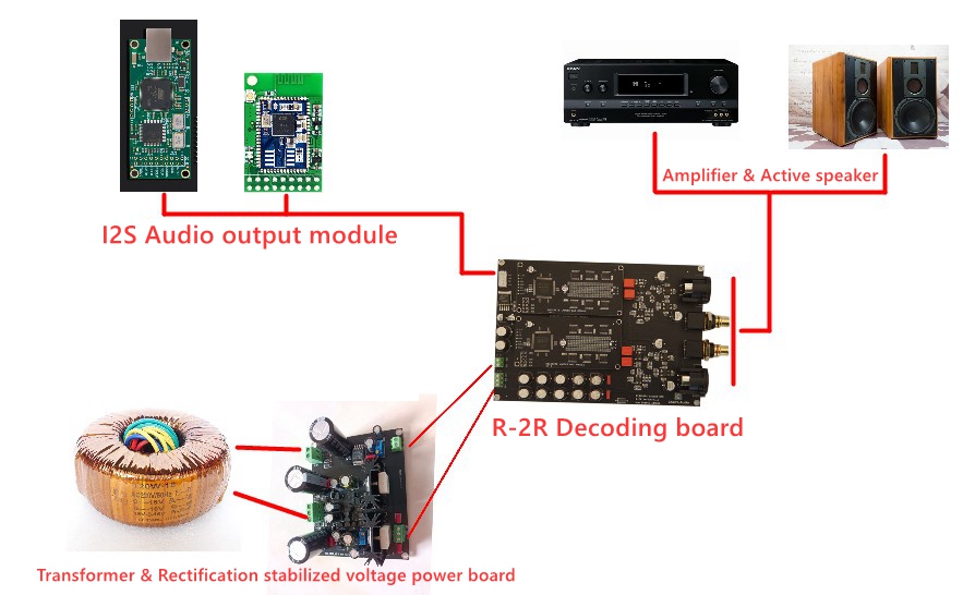 - Signal input: I2S standard interface GND LRCK BCK DATA (support Italian interface card, Bluetooth 12S module, XMOS interface card, sa9227 interface card, wm8805 coaxial to I2S module, ak4113-ak4118 coaxial to I2S module, etc.) does not support old for Philips I2S interface (such as CD motherboard I2S as representative)