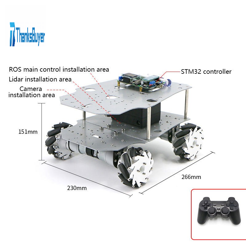 The platform is developed to meet the underlying needs of ROS development, offering a selection of chassis structures including Ackerman/differential, Mecanum wheels, omni wheels, tracks, and four-wheel drive. The electronic control system is shared across all types. Users can control the robot car's speed via serial port or CAN. It has built-in kinematic analysis and can output data such as odometry and IMU information. Combined with your Raspberry Pi or other main controllers, you can easily build a ROS robot.