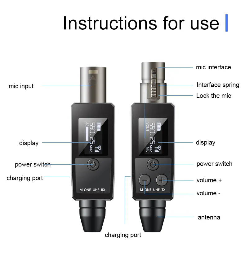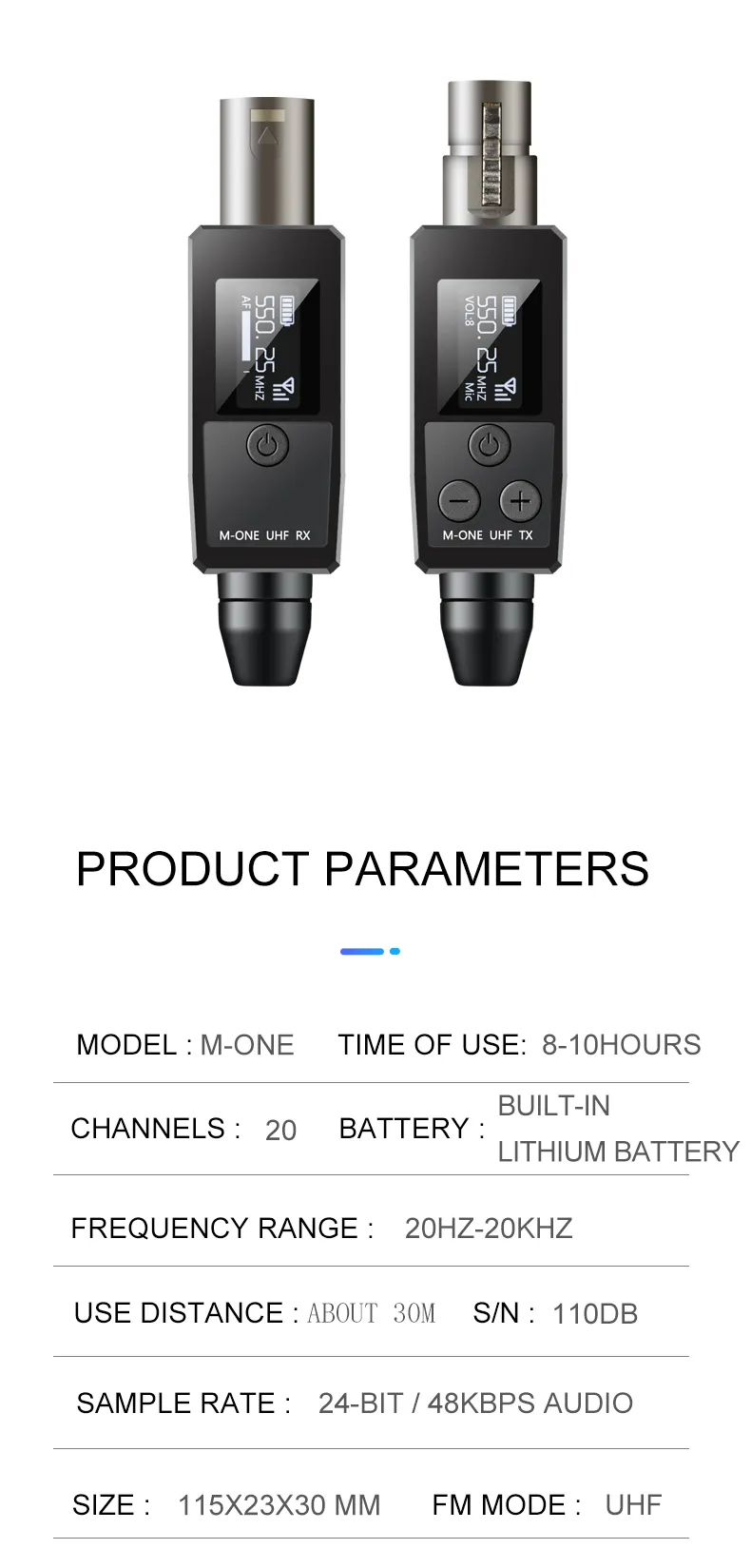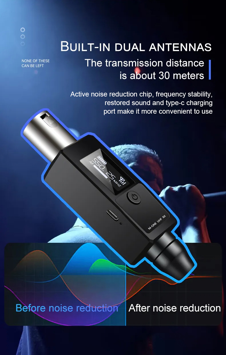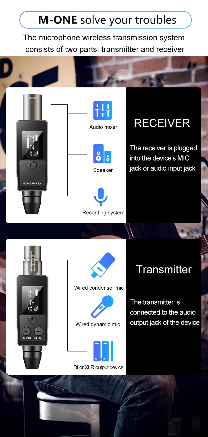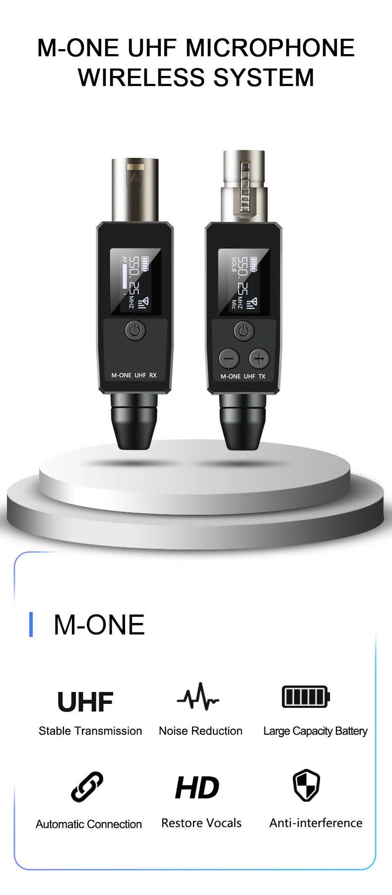 RA80 M-ONE UHF Microphone Wireless System Wired to Wireless Microphone Transmitter and Receiver XLR