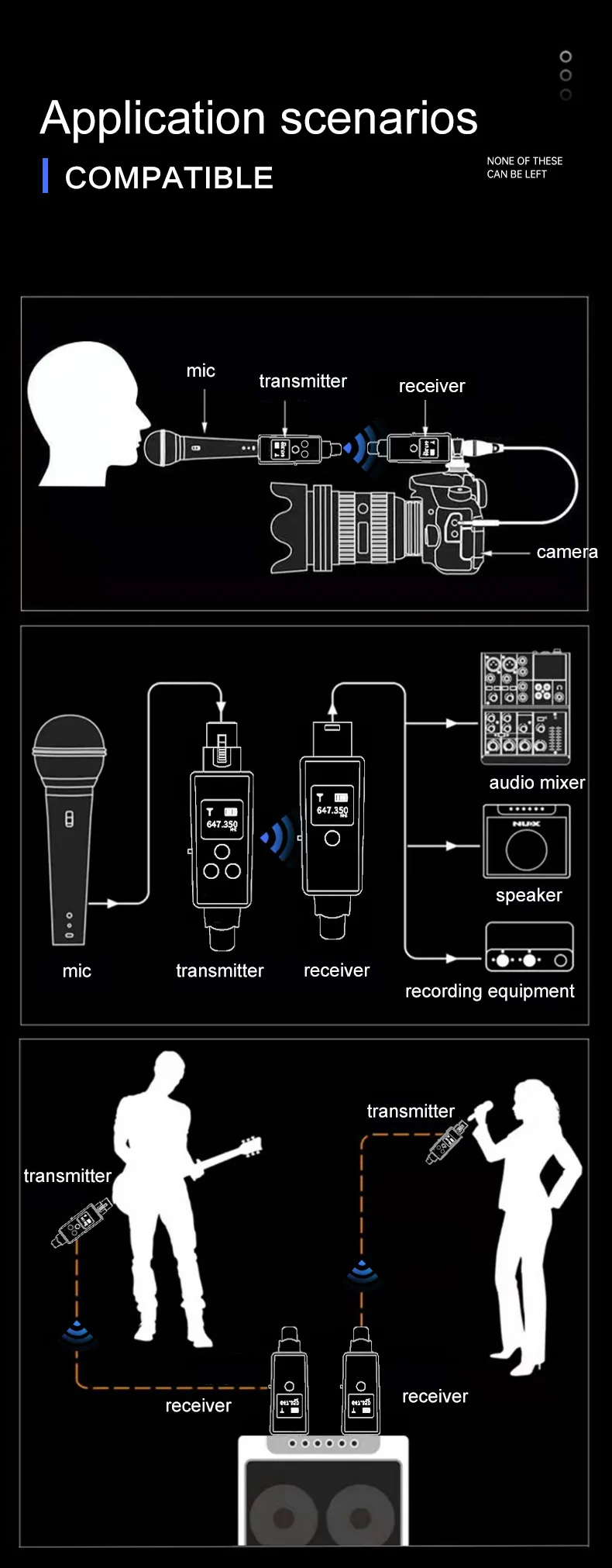 - Universal UHF Modulation: This product adopts a universal ultra-high frequency modulation type enabling it to be used globally.