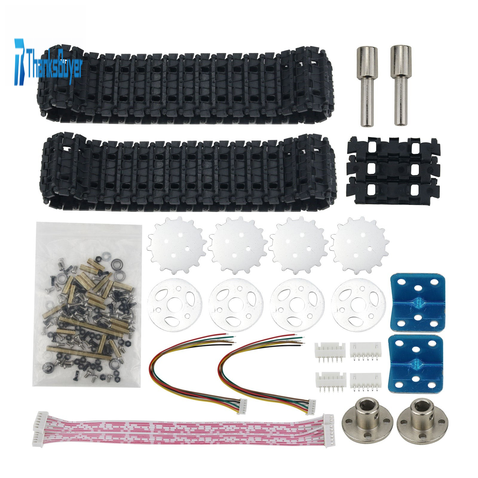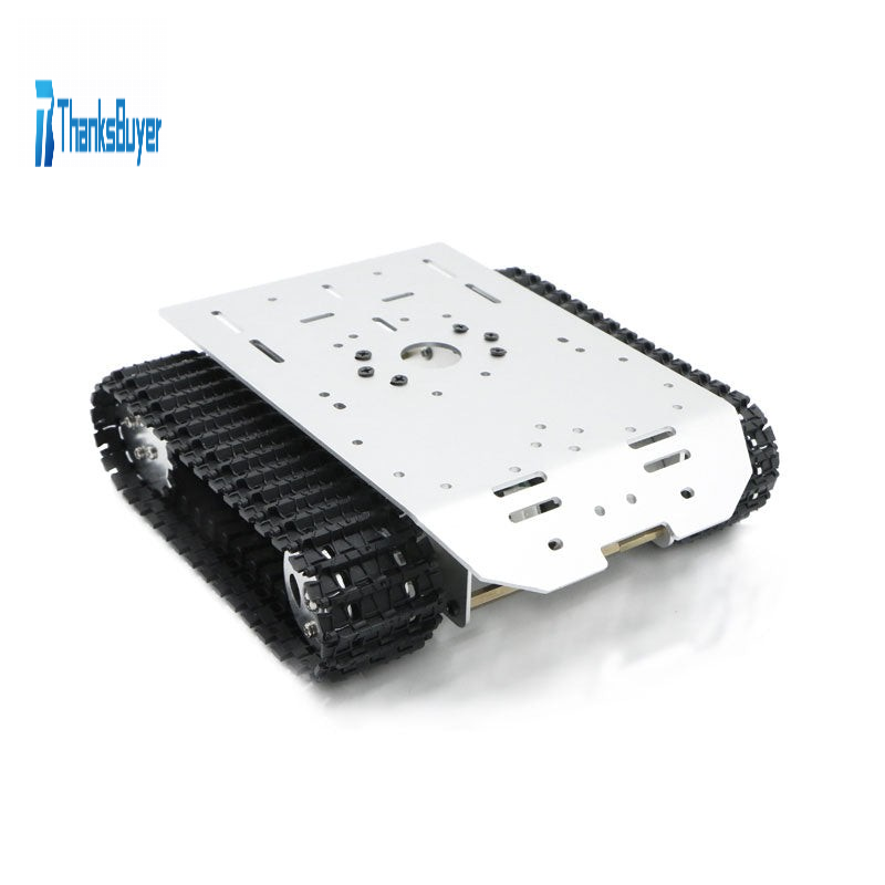Tank Chassis Kit is exquisite and beautiful in appearance. The chassis bracket and wheel train are made of metal, which are firm and stable. Two geared motors with encoders provide power, and have the characteristics of forward and backward, left and right rotation, circling, flexible turning and so on.