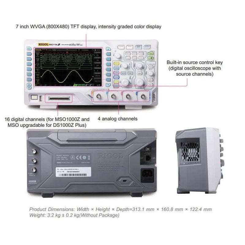 RIGOL DS1054Z 50MHz Bandwidth 4-Channel Compact Digital Oscilloscope with 7-inch TFT Displa