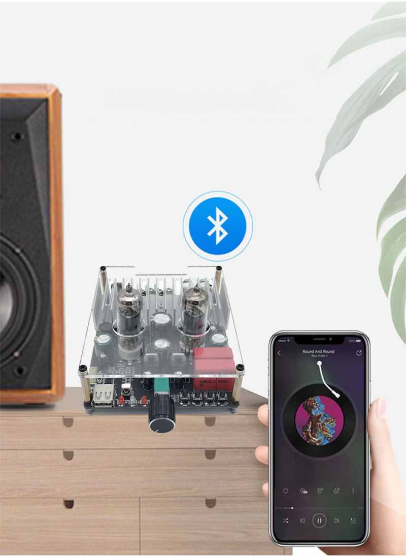 RKY HIFI BT5.0 Hifi Tube Amp Bluetooth Amplifier Module Power Amp with Remote Control (6K4 Tubes)