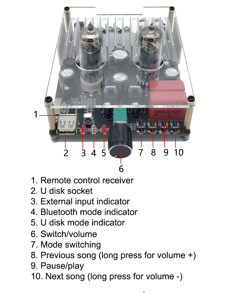 - TDA7377 chip (for ST) and tube preamp make the sound rich and sweet